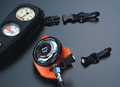 ゲージ&オクトパスホルダー BCのD環などに取り付けることで、知らずにダメージを与えているサンゴなどの自然を保護