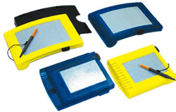 水中ノート(シグナルミラー付き) 水中で書くことのできる耐水紙を使用した水中ノート、 万一の際に太陽光を利用して位置を知らせるシグナルミラー付き